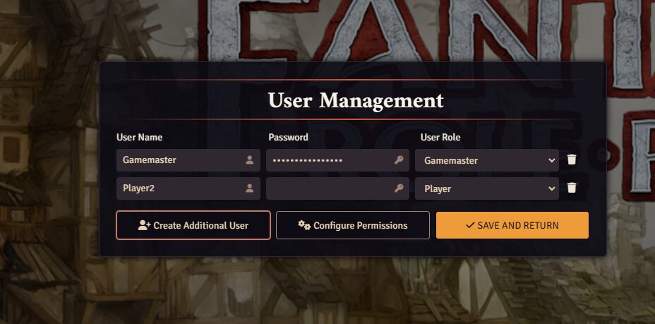 There are other advanced options here as well, should you desire to run a co-GM game or even set up a passive observer slot. For our basic needs, all you need to do is add your players as a player and save.