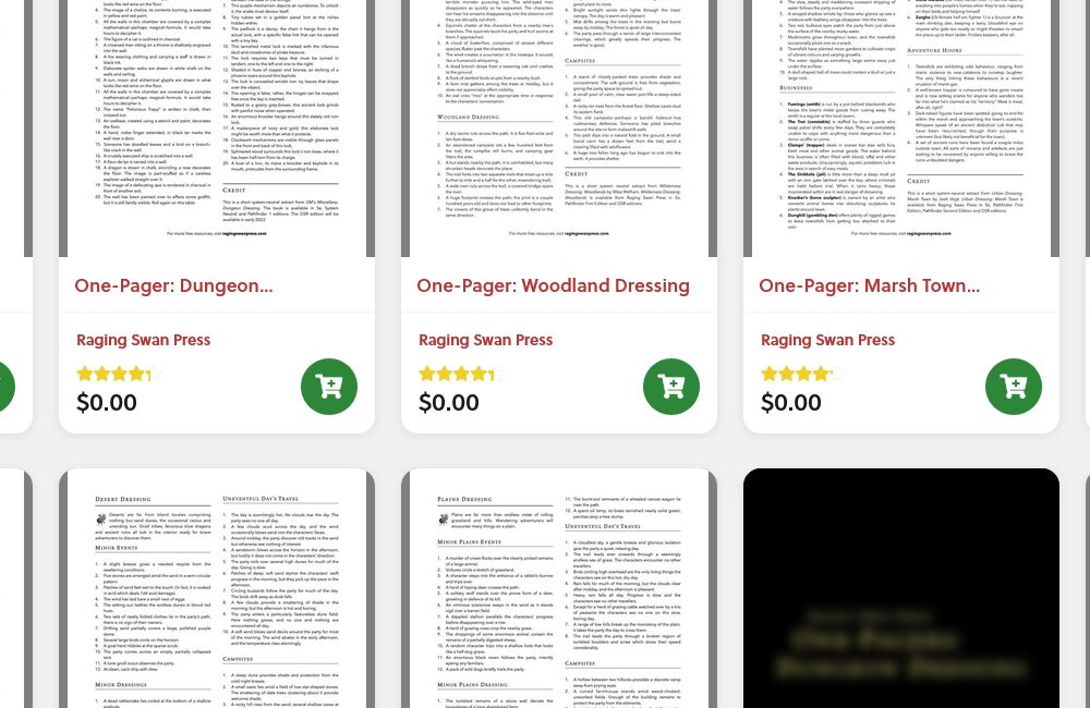 - Now, let’s say that you don’t want the traditional combat-centric experience. In that case, don’t forget that non-combat encounters are a thing: you might want to take a look at One-Page Dressing series by Raging Swan Press. You can make travel as abstract and story-fueled as you want to — don’t listen to folks who pretend like this is illegal or something.